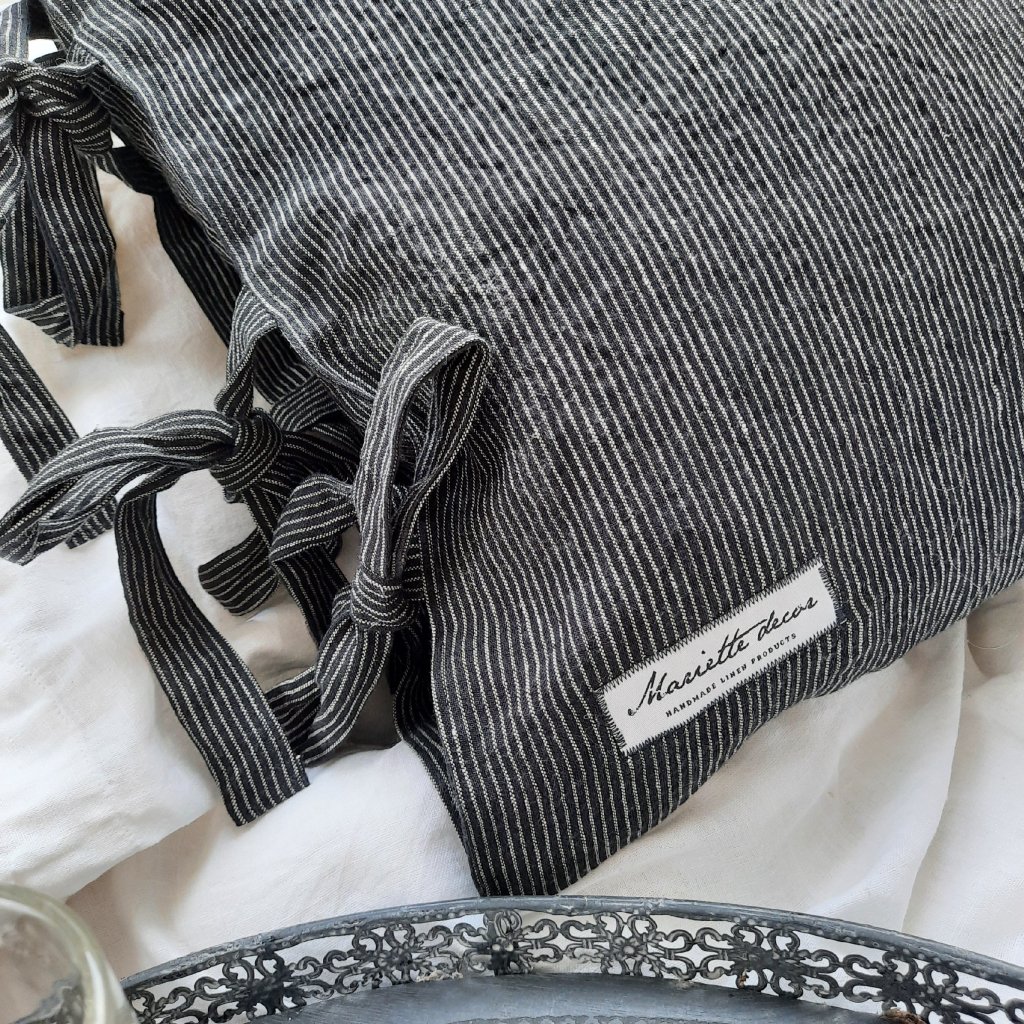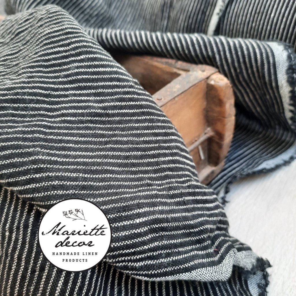 Tenhle kousek lněné látky má v sobě kouzlo jednoduchosti – decentní proužek v černobílém kontrastu, který dodá každému projektu eleganci i trochu francouzského šarmu.