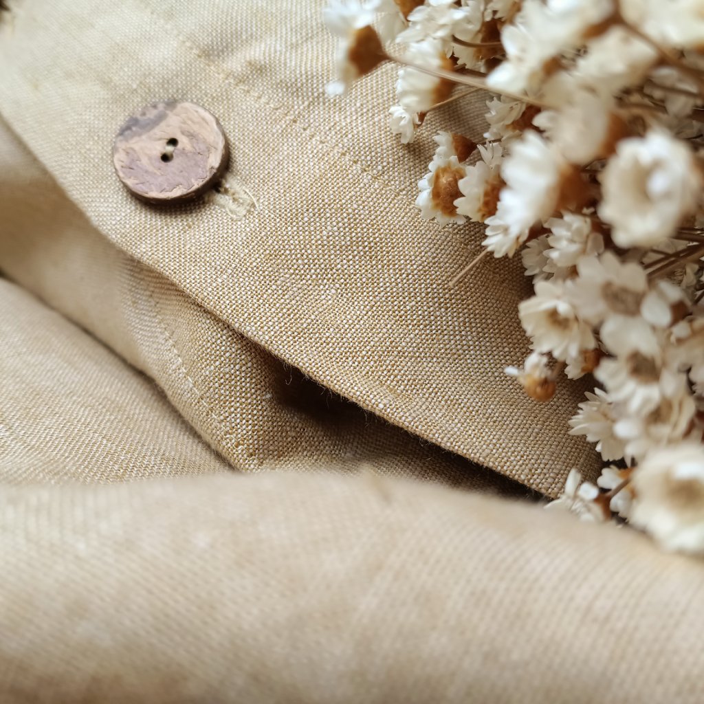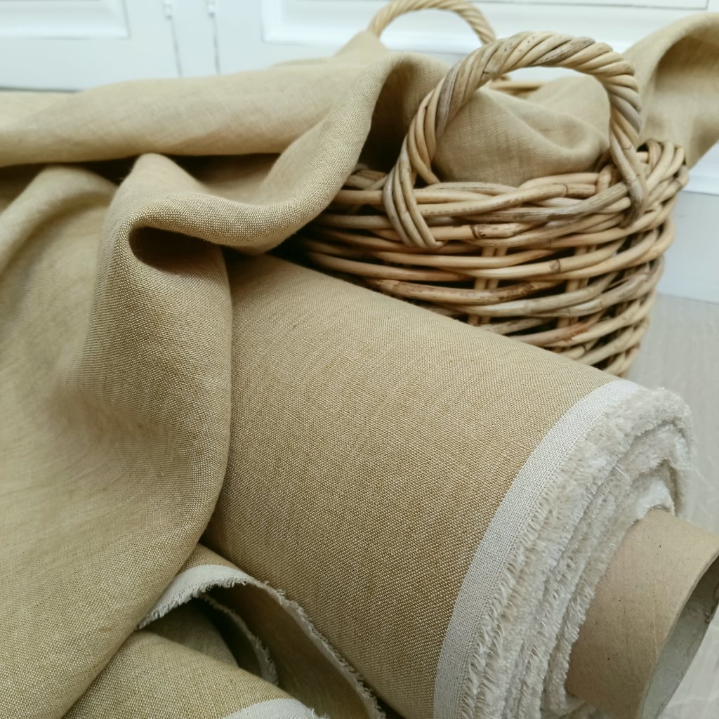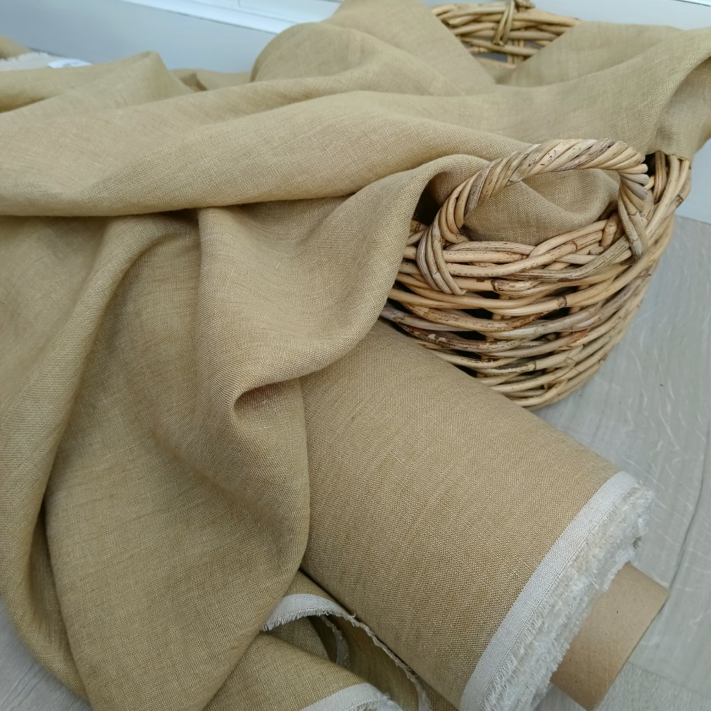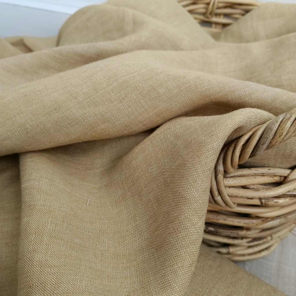 č.2....100% len metráž odstínDIJON MUSTARD MELANGE 205g/m2, krásný melír hořčicové a béžové, len vysrážený, předepraný, měkčený, v úpravě stonewashed