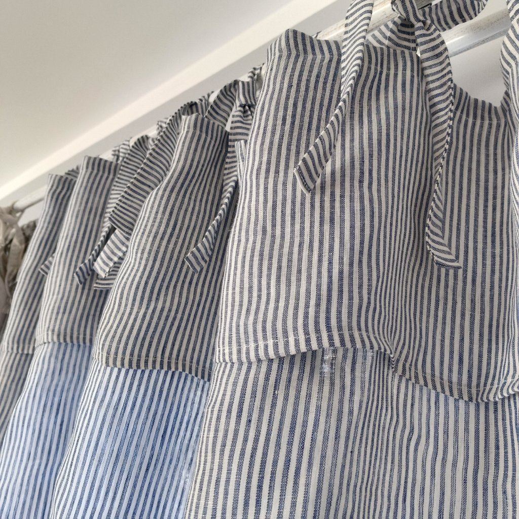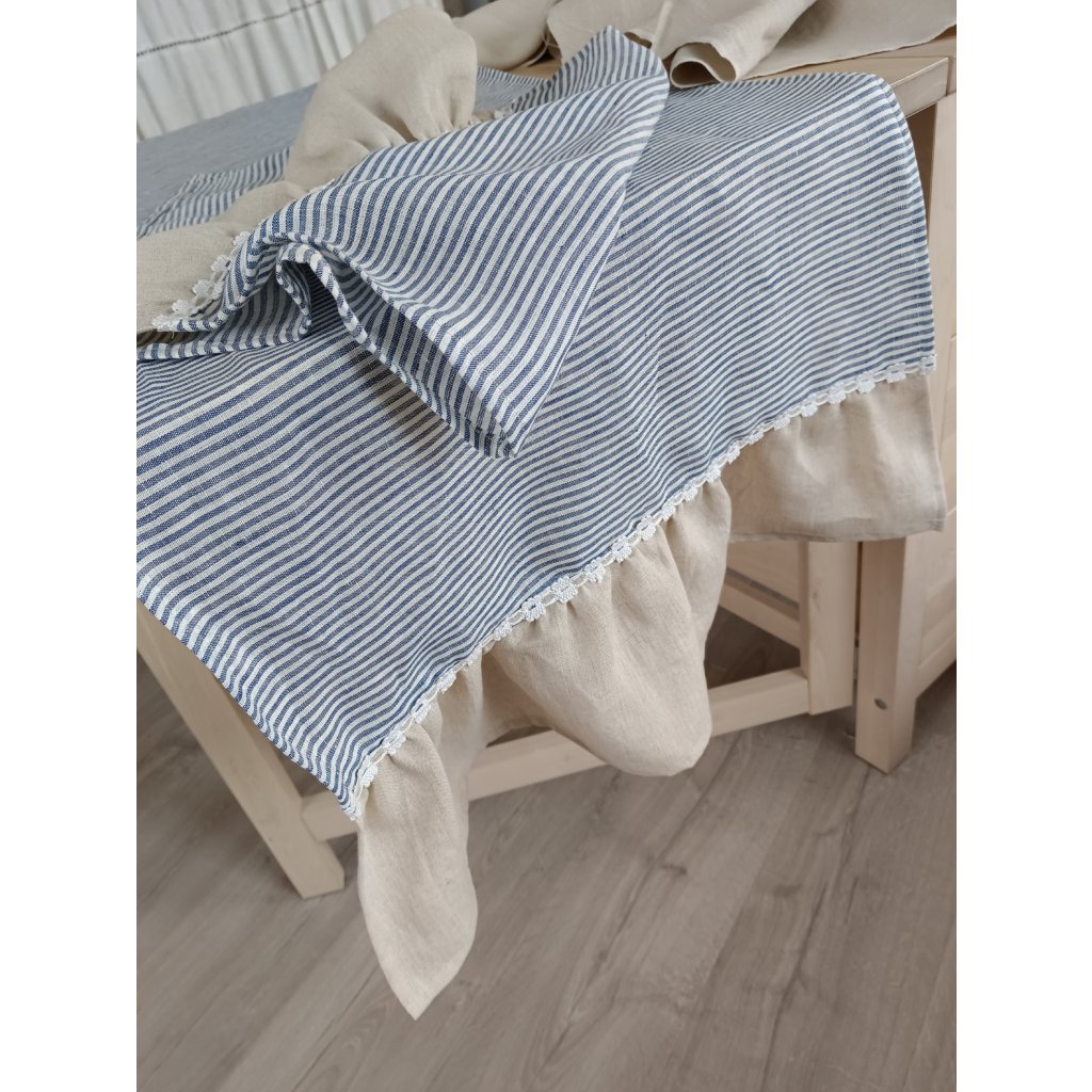 č.13....100% len metráž odstín MEDITERRANEAN BLUE/WHITE stripes 130g/m2, pruhy 2mm, len vysrážený, předepraný, měkčený