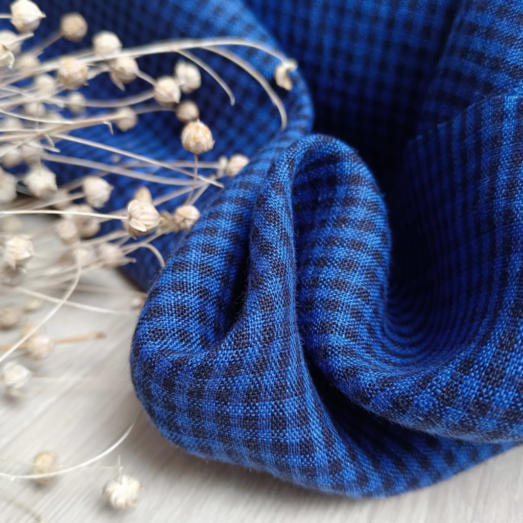 č.97....100% len metráž Borůvkové mini kostičky 180g/m2, nádherný měkký materiál, kostičky 2 mm, venkovský styl, vysrážený, předepraný, měkčený, v úpravě stonewashed.