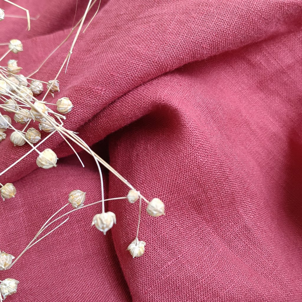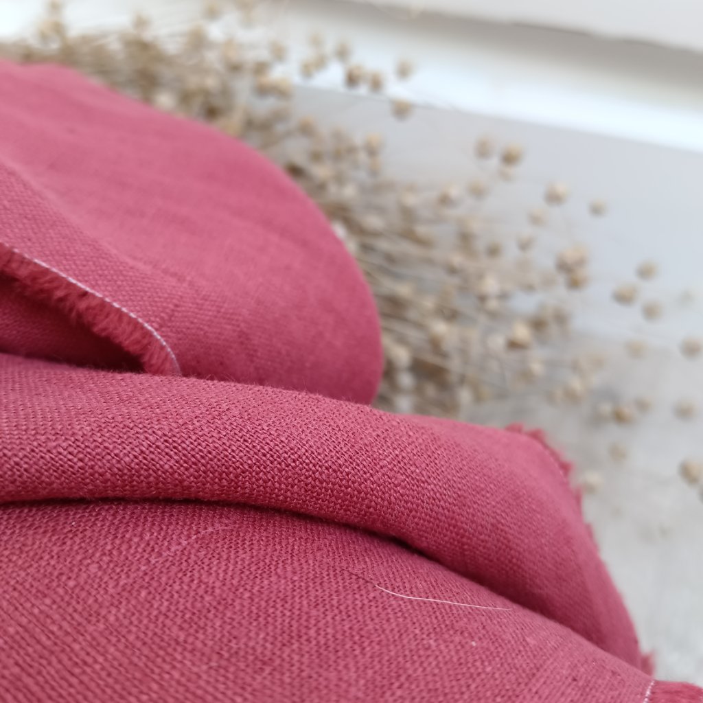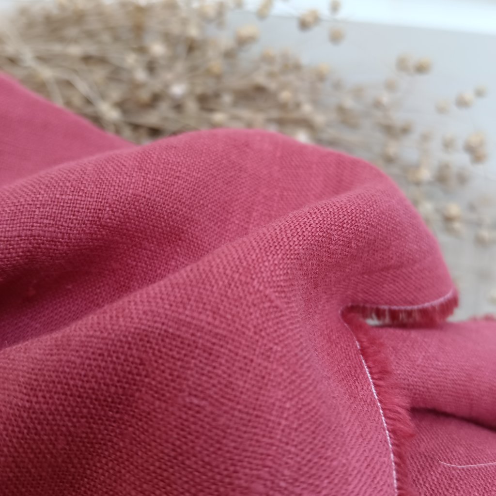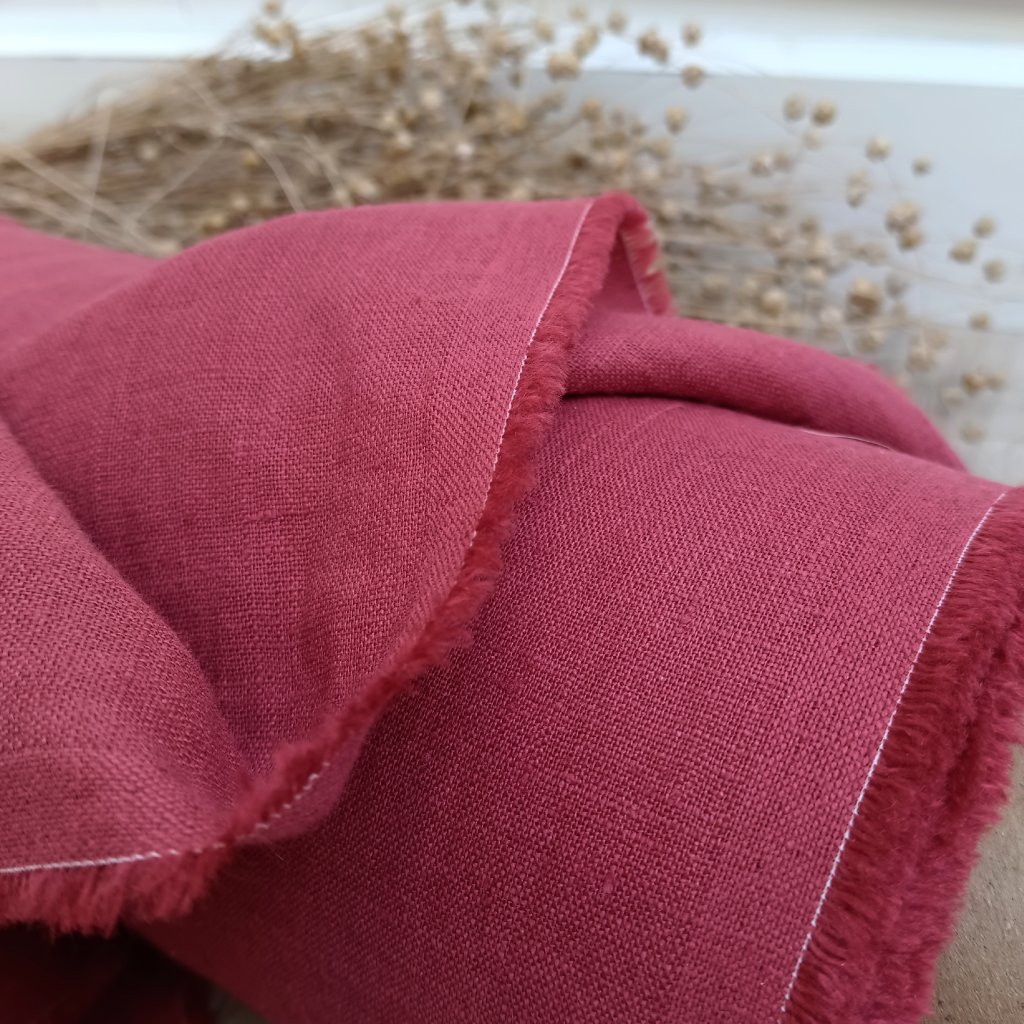 č.77....100% len metráž odstín RASPBERRY 205 g/m2, krásnýodstín malinové, vysrážený, předepraný, měkčený, v úpravě stonewashed