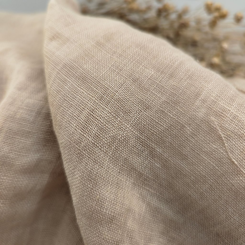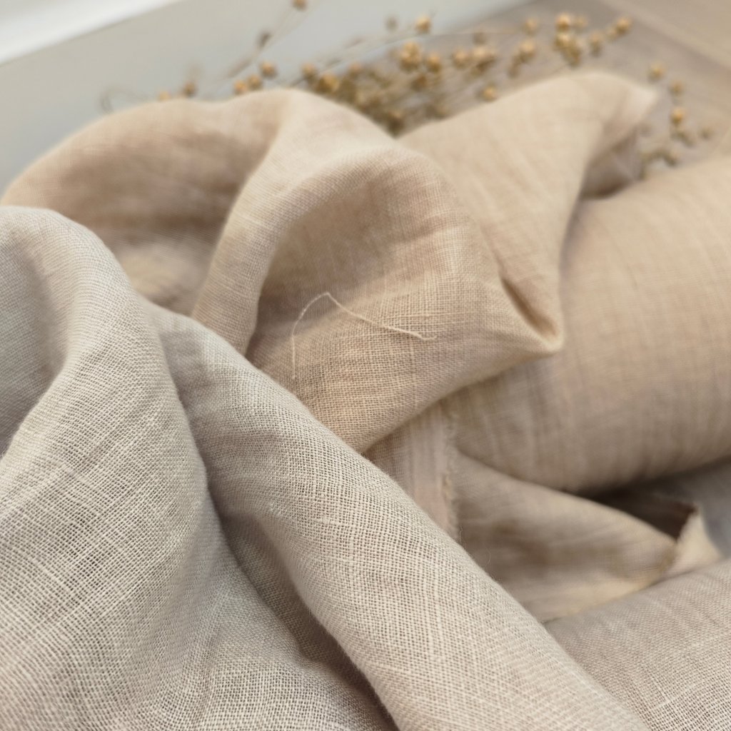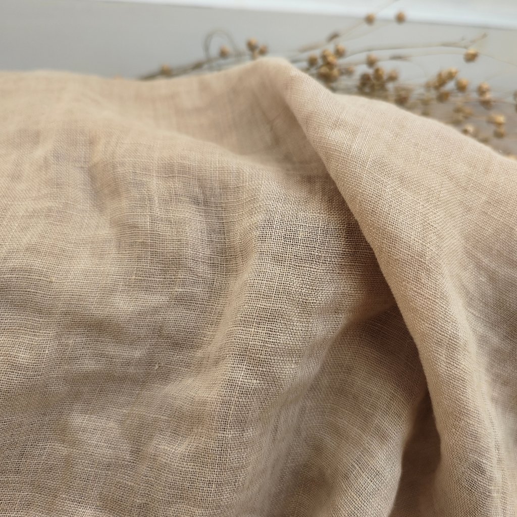 Nový krásný odstín BISCUITS, slabší vlákno 93 g/m2, 100% len vysrážený, předepraný, měkčený, hodí se na jemné záclony či šálky nebo šátky.