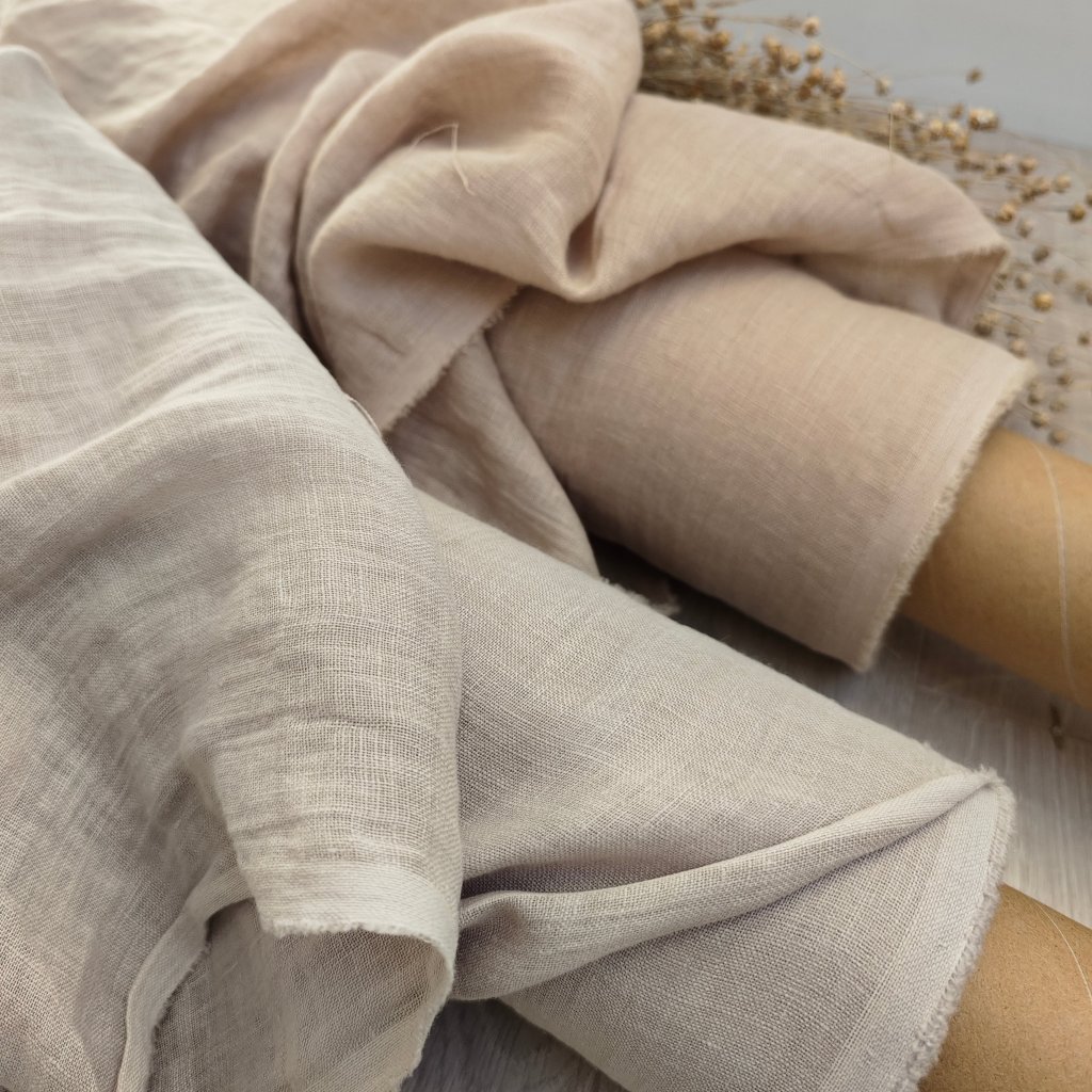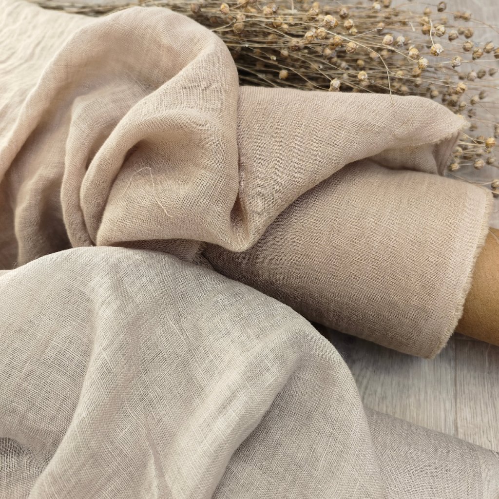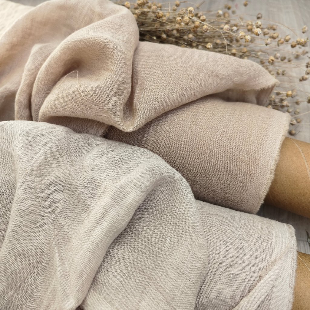 Nový krásný odstín BISCUITS, slabší vlákno 93 g/m2, 100% len vysrážený, předepraný, měkčený, hodí se na jemné záclony či šálky nebo šátky.