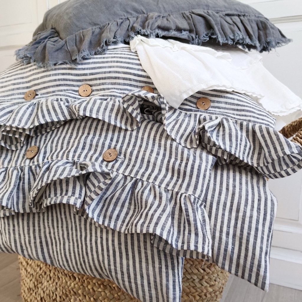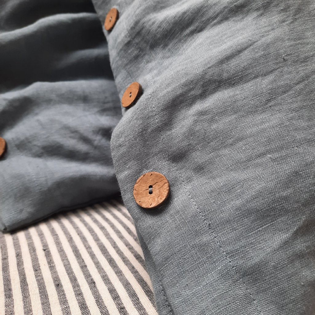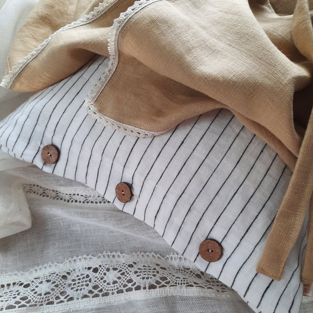 Krásně doplní lněné šaty, kabátky, sukně i bytové dekorace jako jsou povlaky na polštáře nebo přehozy.