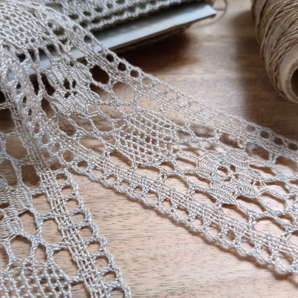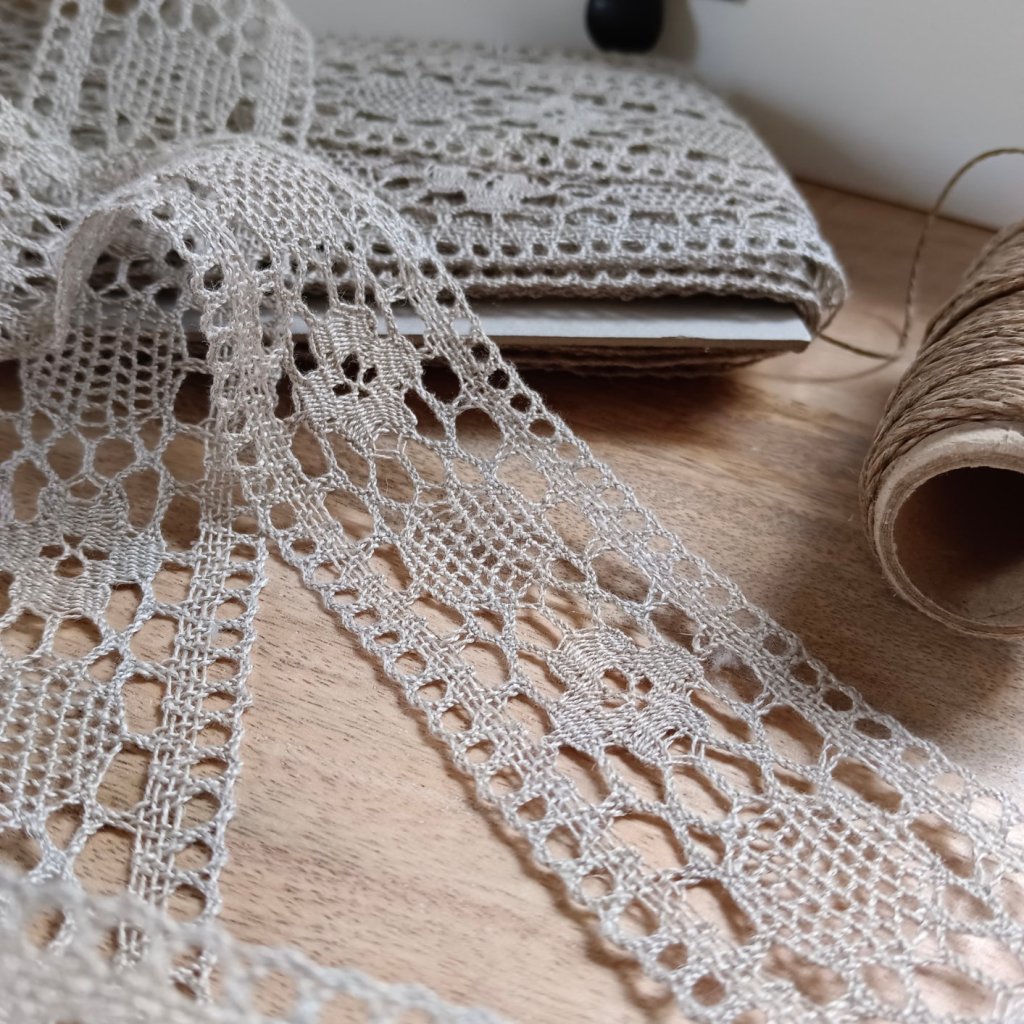 Tahle krajka je přesně ten typ kousku, který promění obyčejný projekt v něco výjimečného. Pokud šiješ ze lnu a miluješ výrazné, ale přirozené detaily, tahle extra široká krajka se rychle stane tvou oblíbenou šicí nezbytností.