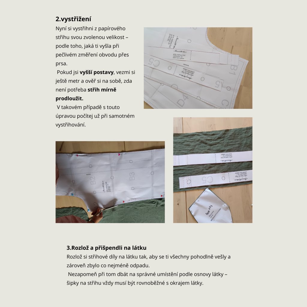Podrobný fotonávod s instrukcemi, na více jak 30 stranách, jak šít krok za krokem dostanete spolu se střihem, ihned po zaslání papírového střihu , vám bude elektronicky formou PDF souboru zaslán podrobný fotonávod. Vhodné jak pro začátečníky, tak pro pokročilé.