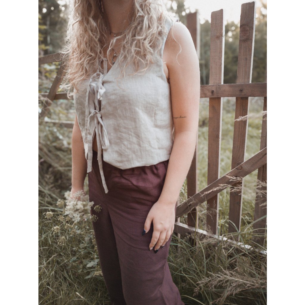 Když jsme s dcerami dokončily naši první střihovou „srdcovku“ – lněnou vestičku – bylo nám jasné, že k ní musíme vytvořit i její perfektního parťáka. A tak vznikly lněné kalhoty Elie.