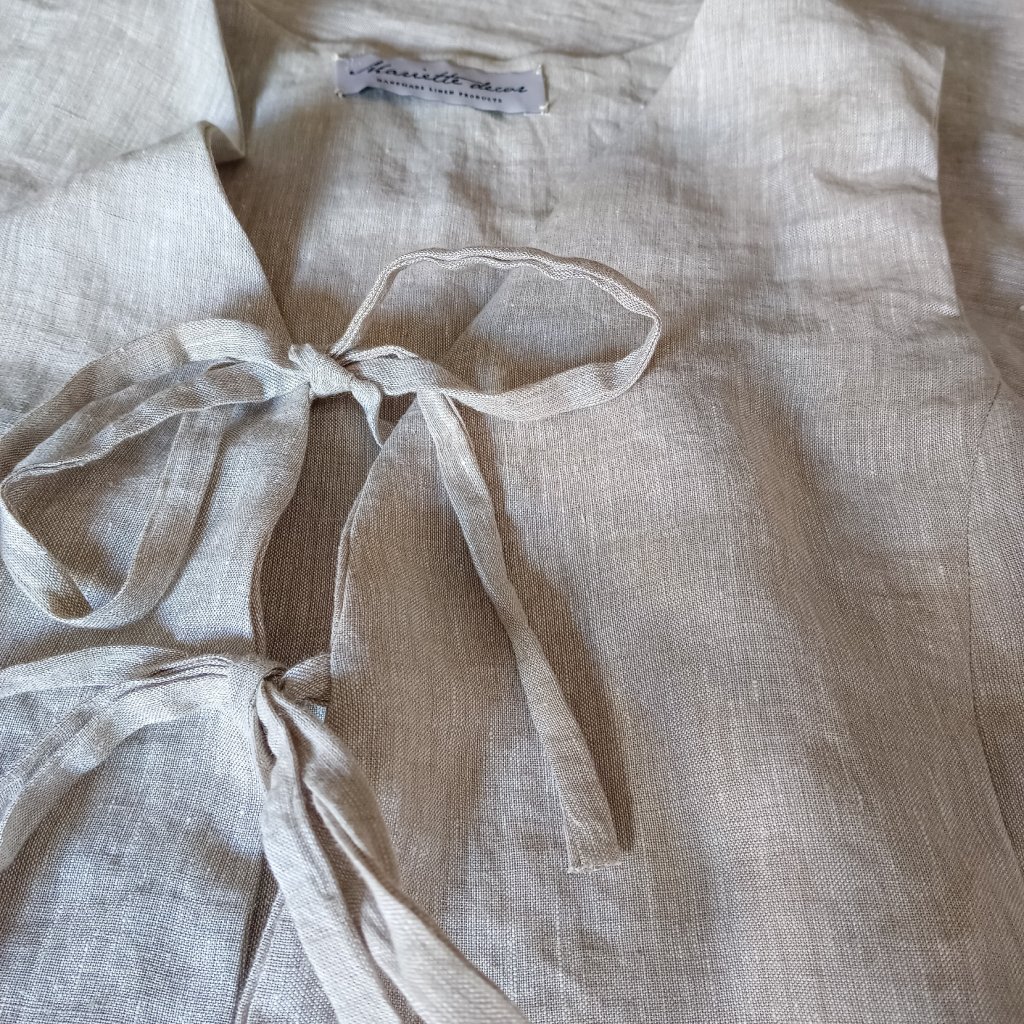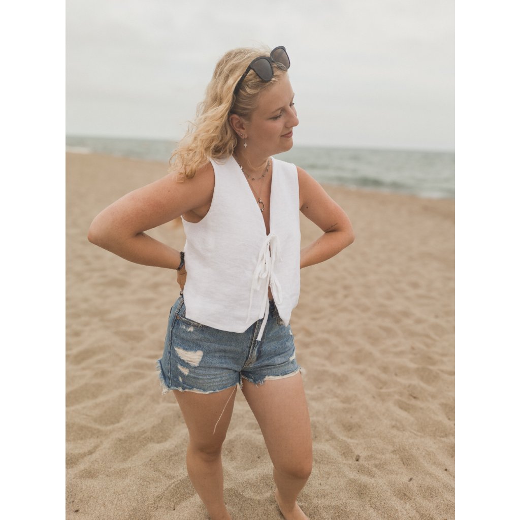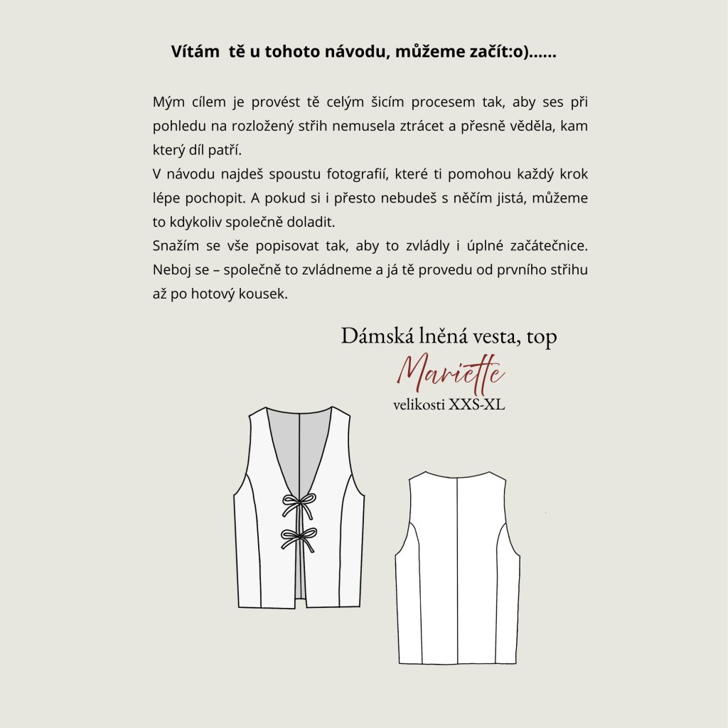 Papírový šicí střih na lněnou vestu s mašličkami – romantický základ šatníku