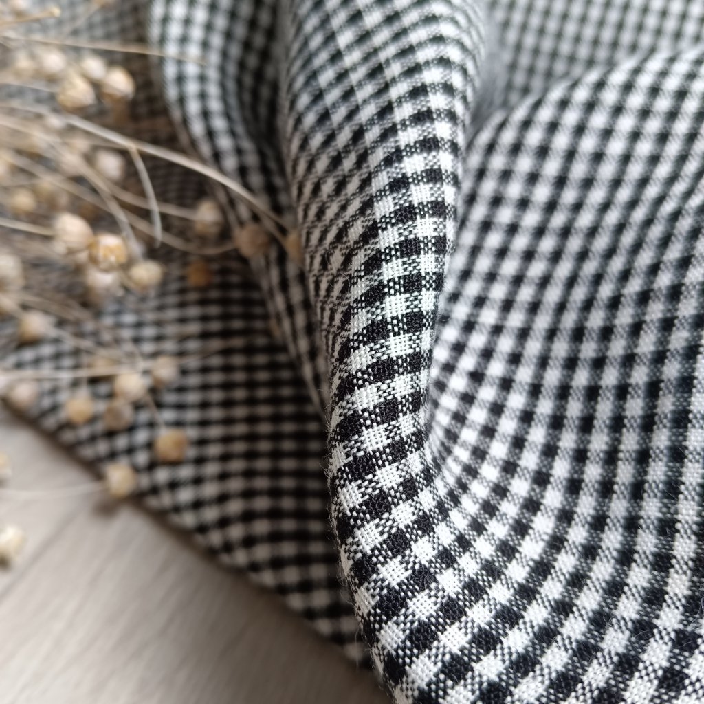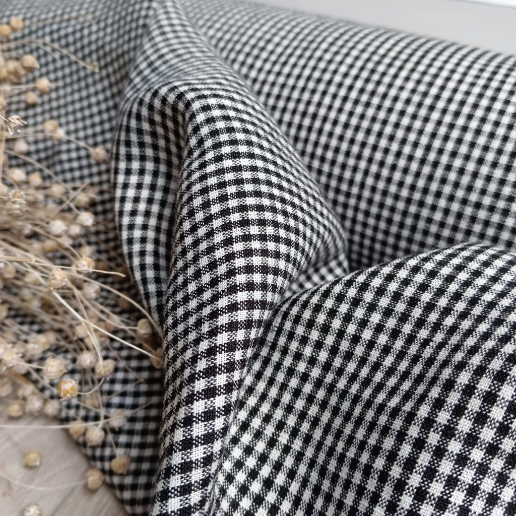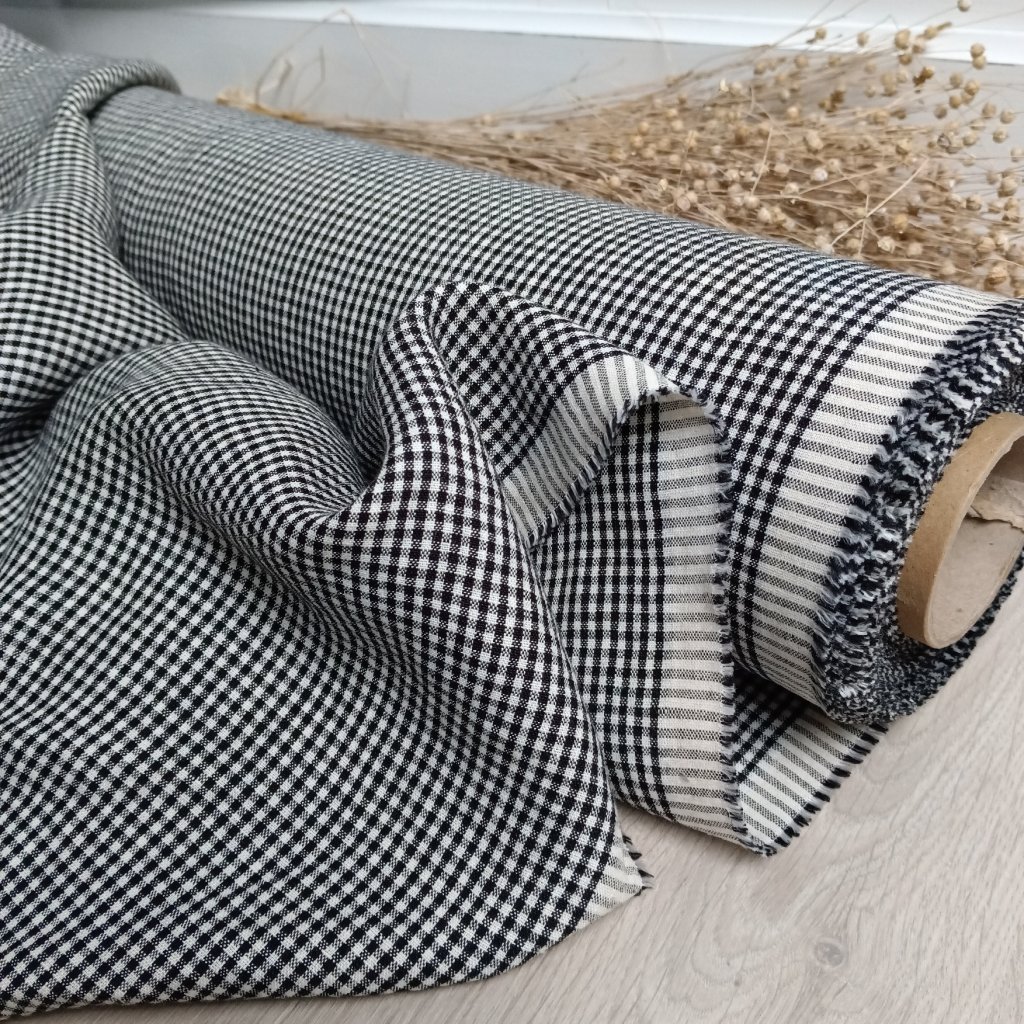 č.96....100% len metráž ČERNOBÍLÉ mini kostičky 180g/m2, nádherný měkký materiál, kostičky 2 mm, venkovský styl, vysrážený, předepraný, měkčený, v úpravě stonewashed.