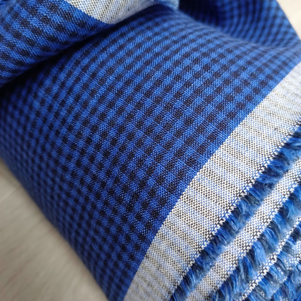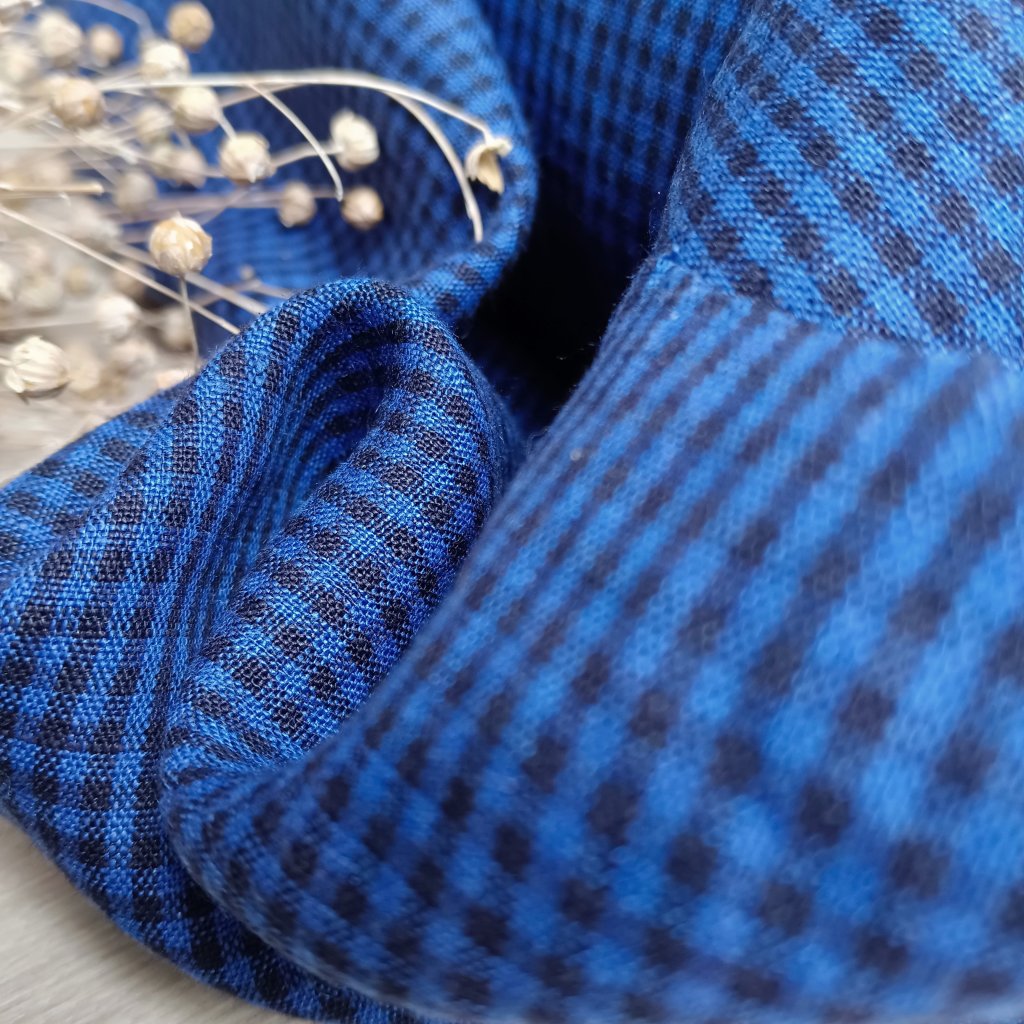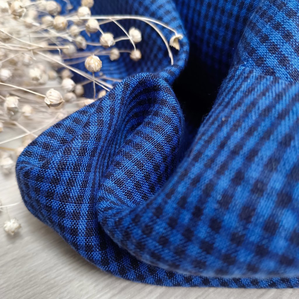 č.97....100% len metráž Borůvkové mini kostičky 180g/m2, nádherný měkký materiál, kostičky 2 mm, venkovský styl, vysrážený, předepraný, měkčený, v úpravě stonewashed.