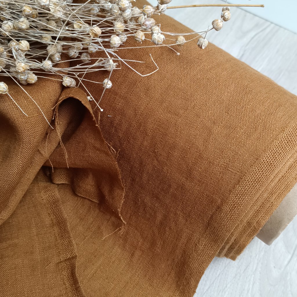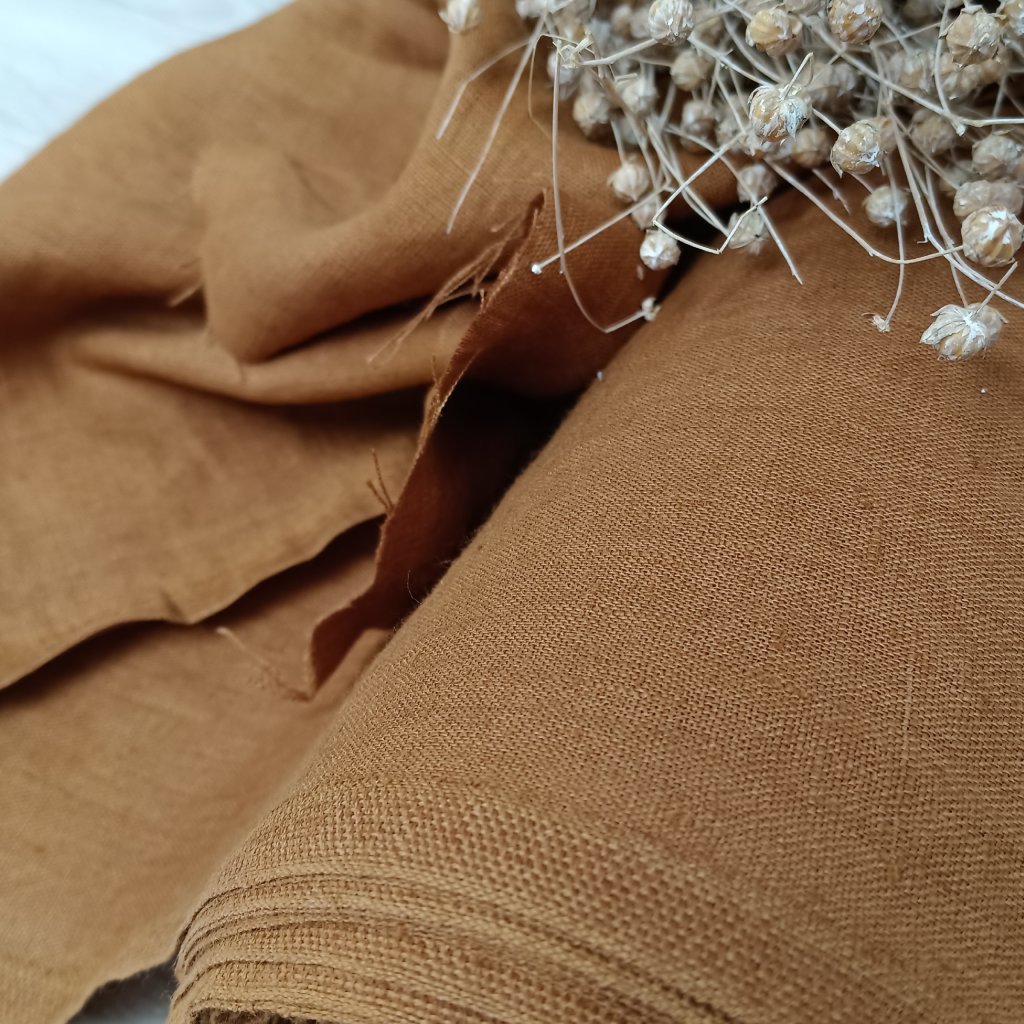 vzorek 3,5x8cm...100% len MED A SKOŘICE 205g/m2....č.103