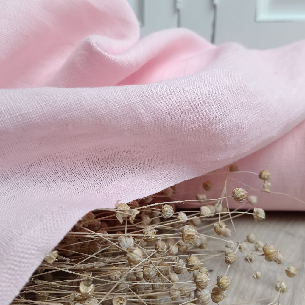 Lněná látka v něžném odstínu pudrově růžové. Krásná na halenky, šaty, sukně, ale i na pohodlné pyžamové kalhoty nebo noční košilku. V interiéru působí klidně a jemně – hodí se na závěsy, polštáře i ubrusy i povlečení. Přírodní, prodyšný a měkký len pro ženské projekty s duší.