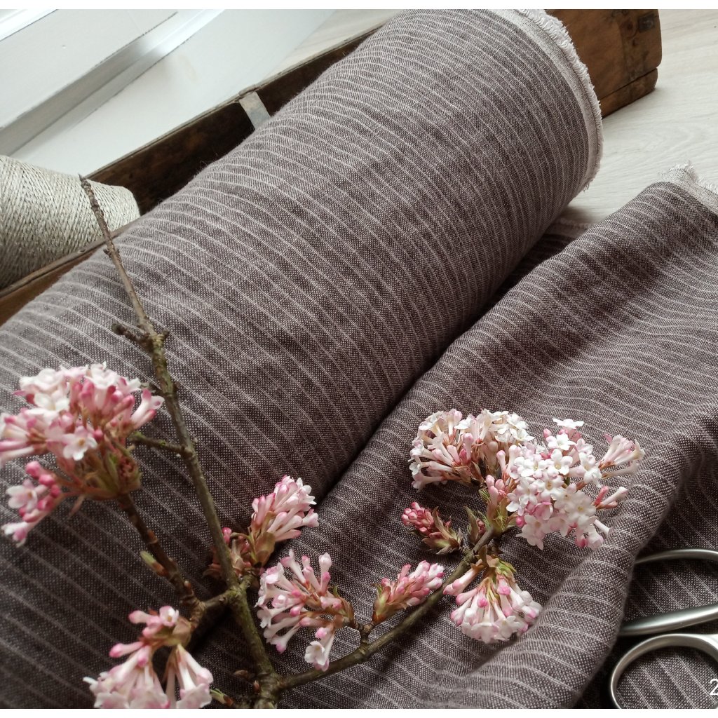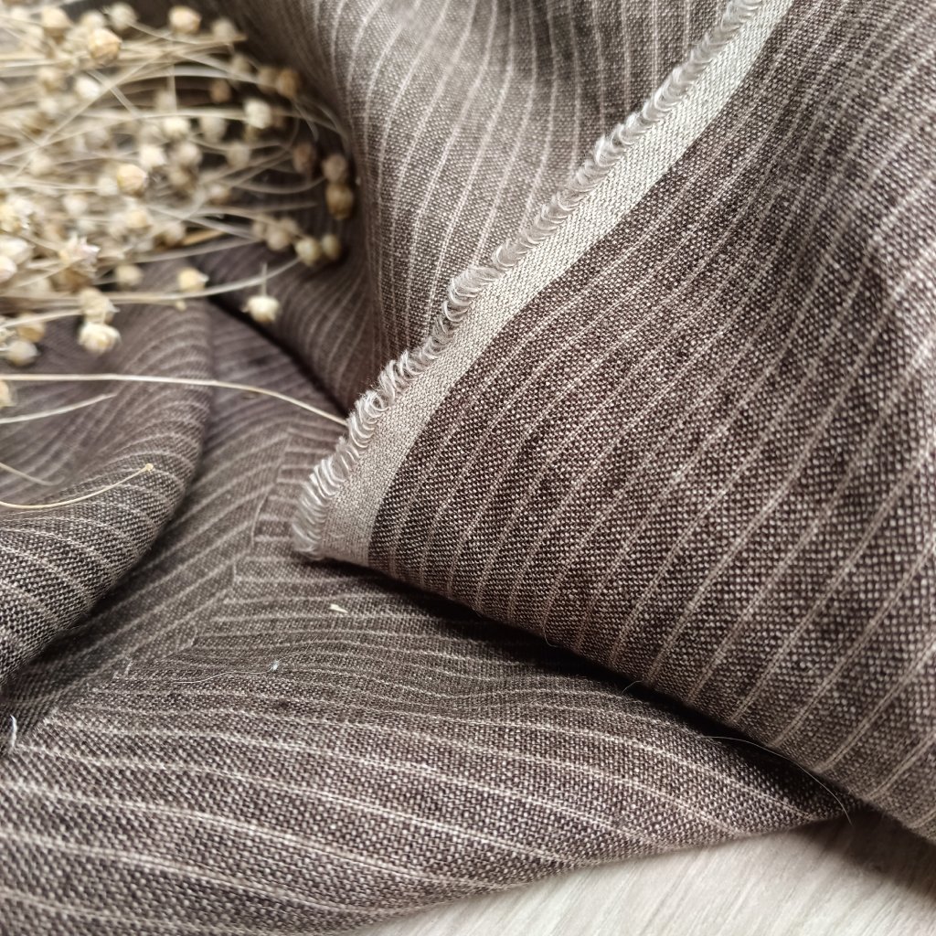 č.88....100% len metráž odstín stripes SMOKY BROWN/WHITE g/m2, len vysrážený, předepraný, měkčený.