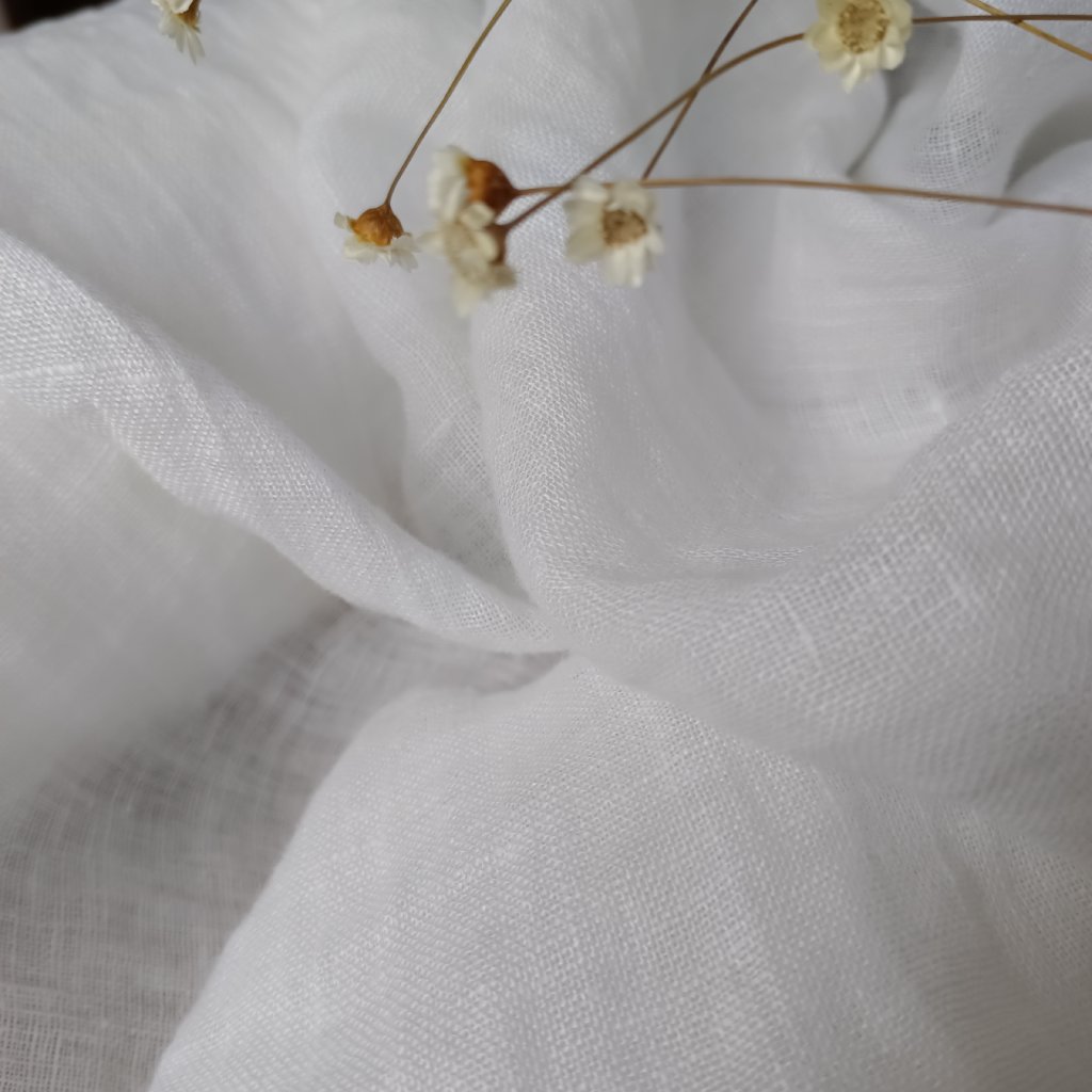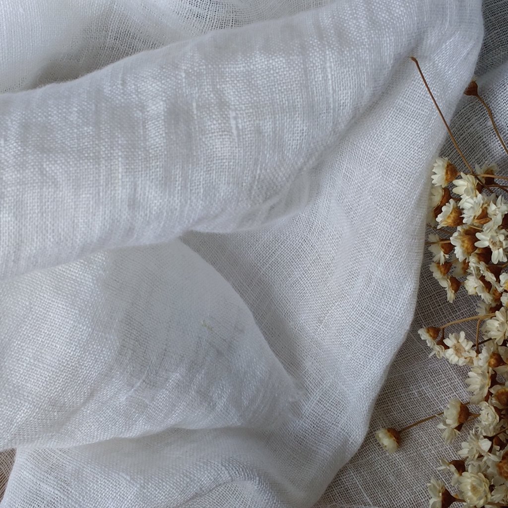 vzorek 8x3,5cm...100% len záclonkový sněhově BÍLÝ 93g/m2....č.91